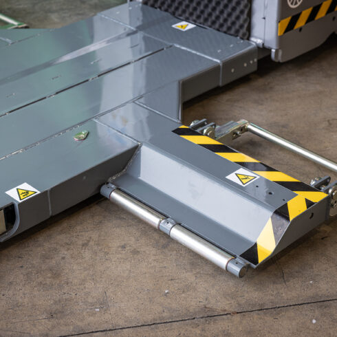 The working principle of the CarMover 2 W requires the trolley to slide under the vehicle to lock the two front wheels with the hydraulic locking mechanism.