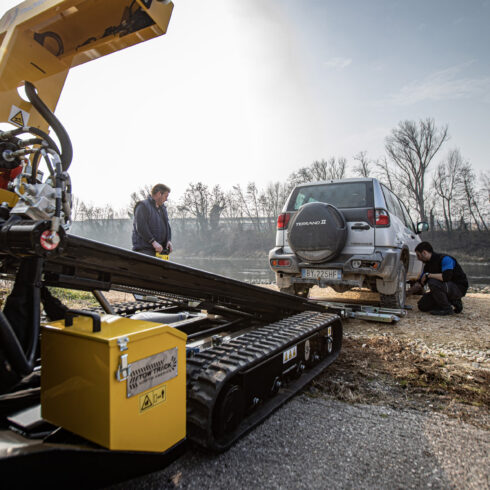 Unsere Raupenketten sorgen für Stabilität auf jedem Terrain, und dank seiner kompakten Größe kann er mitsamt seiner Ladung unkompliziert auf einen LKW verladen werden.